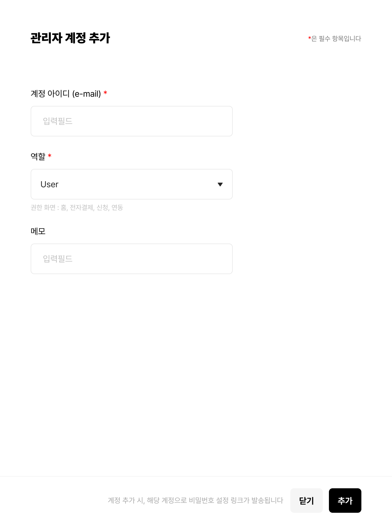 관리자 계정 (Admin) : Owner가 생성할 수 있으며, 모든 기능을 사용할 수 있습니다.