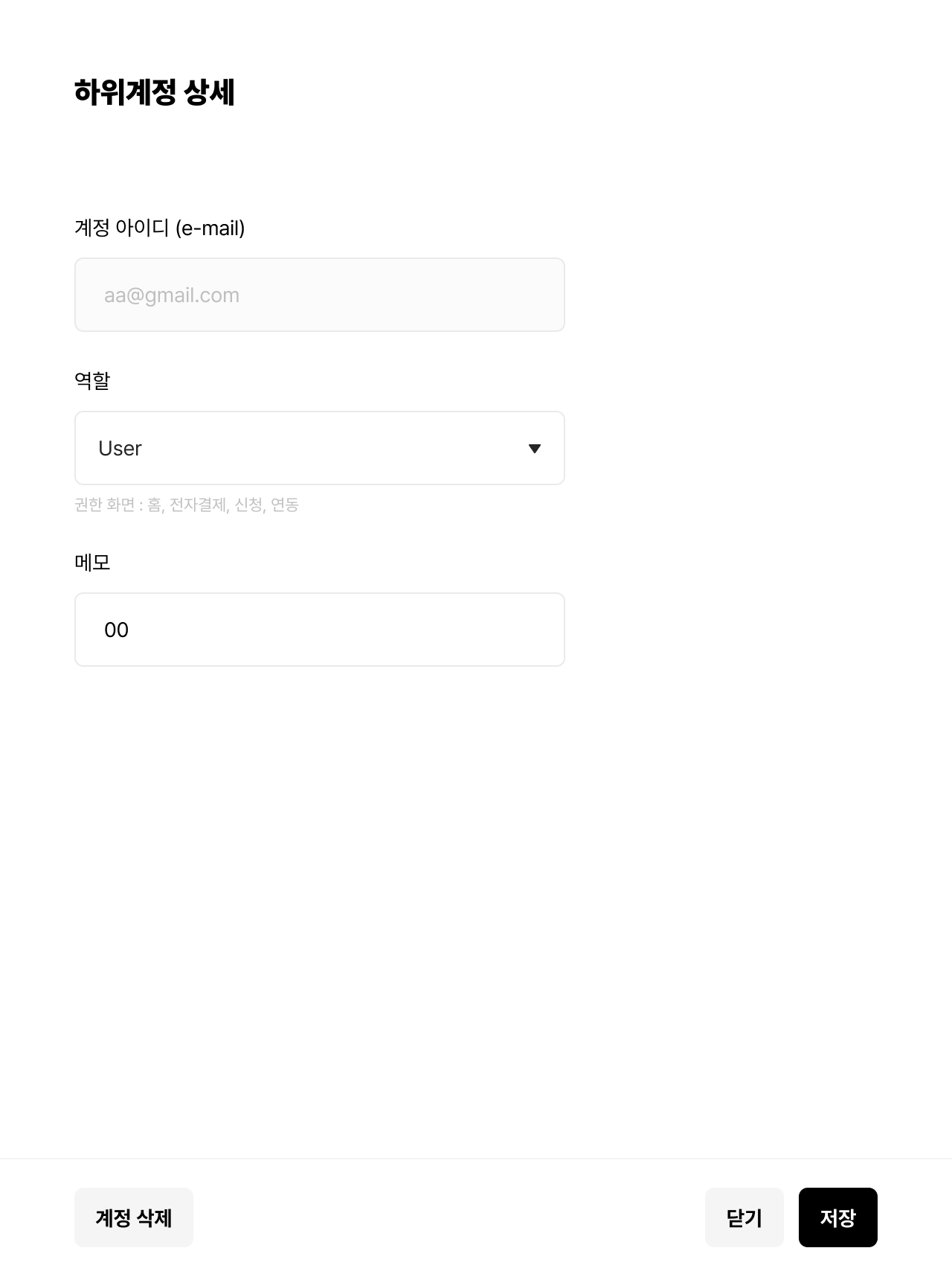 - 해당 계정은 소속된 하위 상점의 모든 기능을 사용할 수 있습니다.