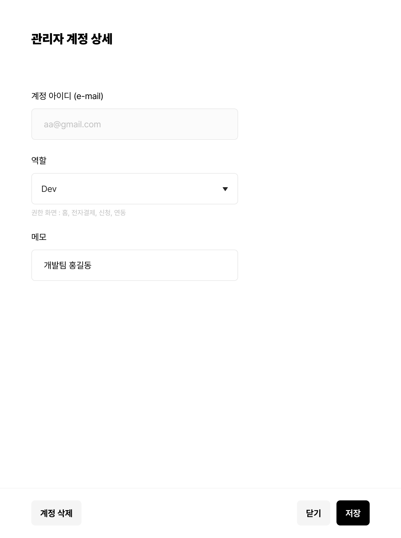 고객사 개발 계정 (Dev): Owner 또는 Admin이 생성할 수 있습니다.