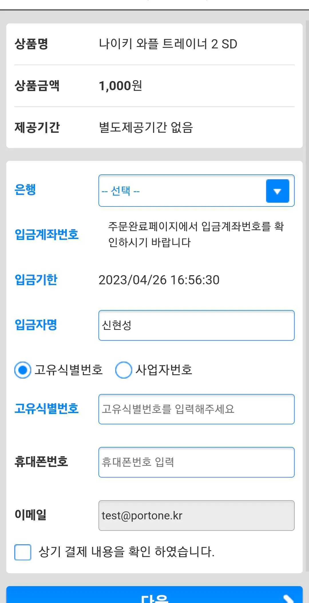 결제창 방식을 이용하기 위해서 고객에게 사전에 해당 고유식별번호가 안내되어야 하며 가상계좌 발급단계에서 아래 첨부이미지처럼 고유식별번호 란에 해당 값이 유입되어야 합니다.